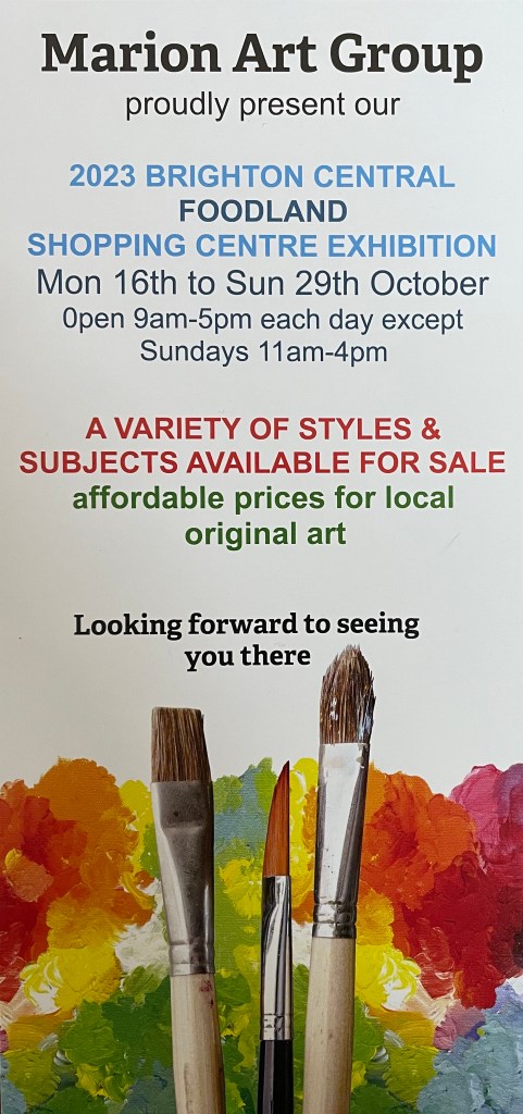 MAG Brighton Foodland Art Exhibition 2023 September 30, 2023marionartgroup Share this: Click to share on X (Opens in new window) X Click to share on Facebook (Opens in new window) Facebook Click to share on Tumblr (Opens in new window) Tumblr Like Loading...